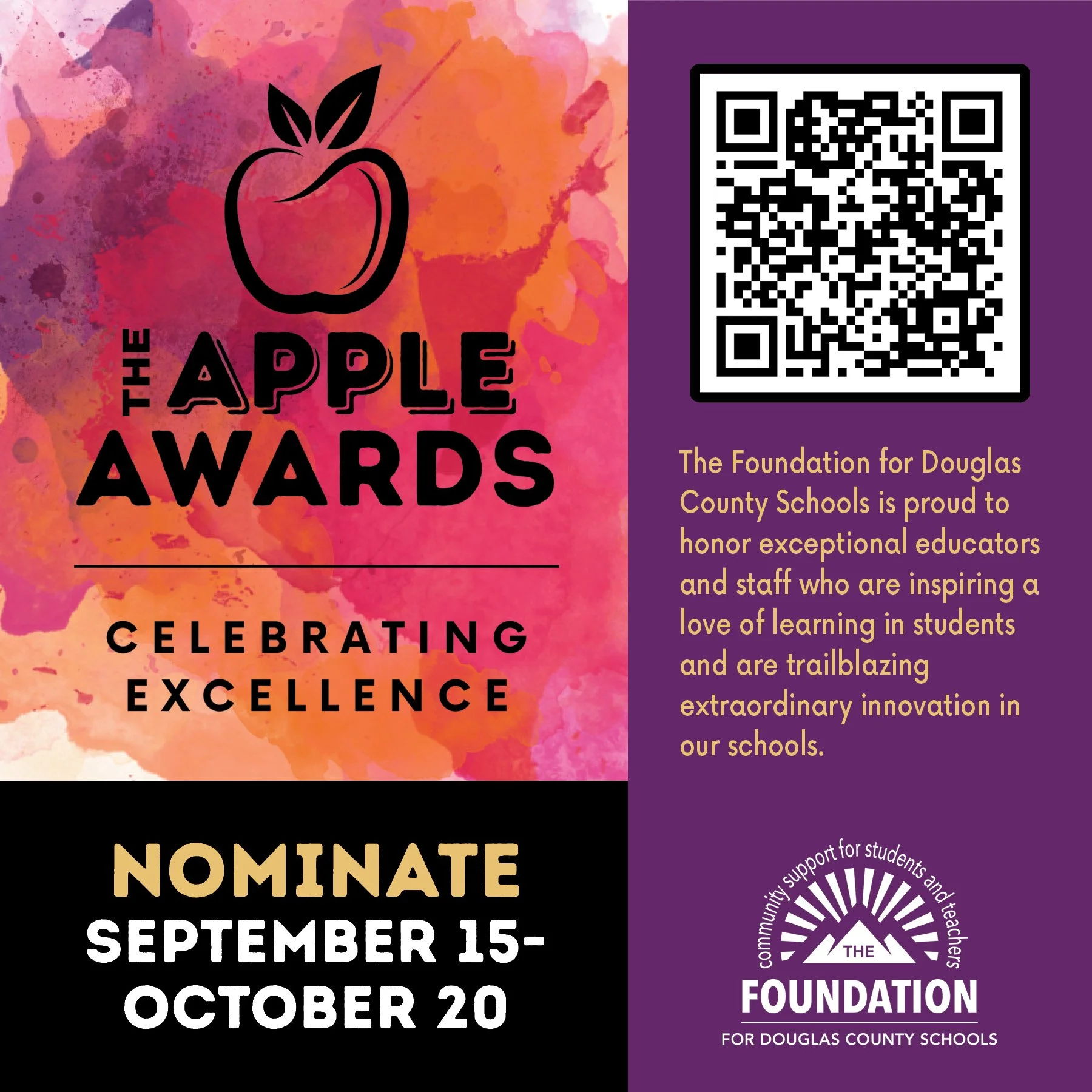 The Foundation for Douglas County Schools is proud to continue to honor exceptional educators and staff who are inspiring a love of learning in students and are trailblazing extraordinary innovation in our schools at the annual Apple Award Gala.